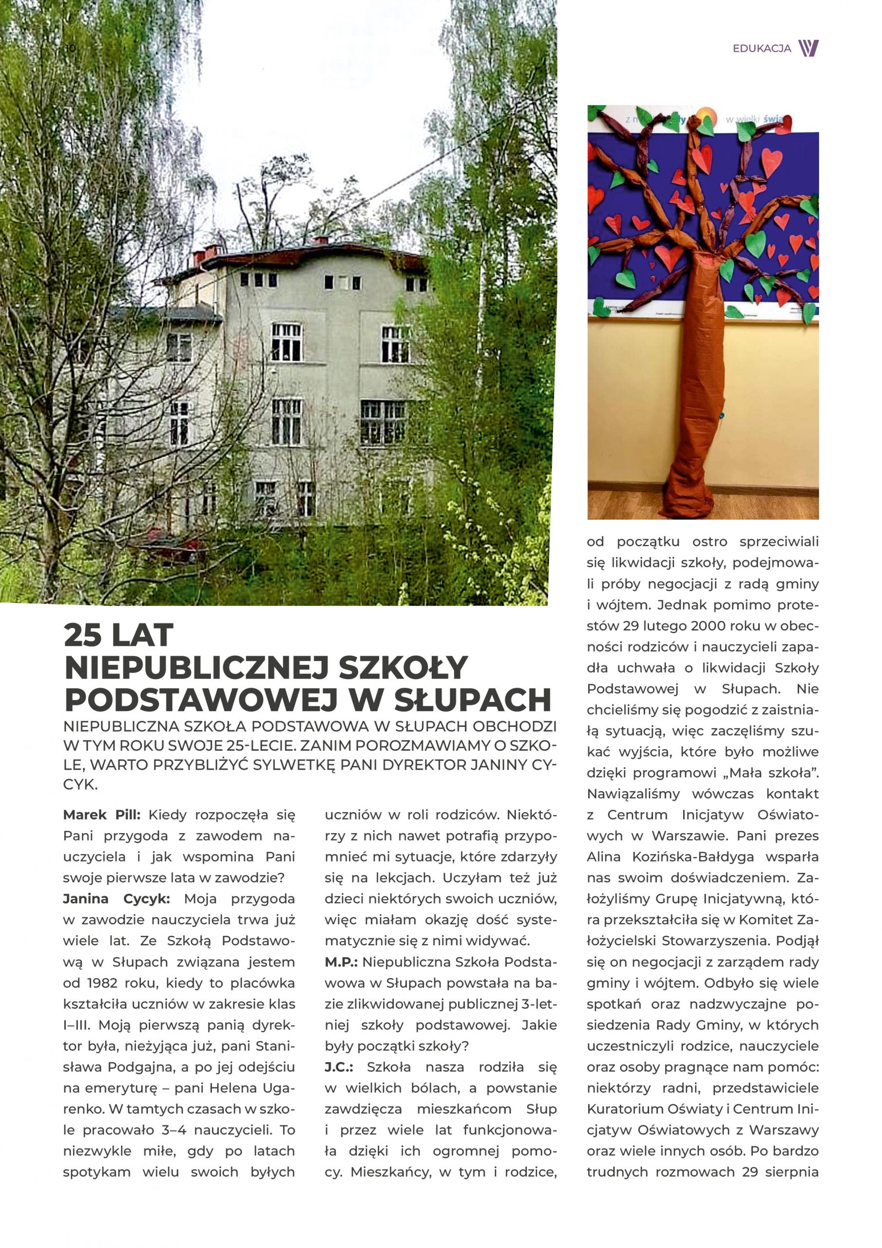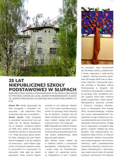 Niepubliczna Szkoła Podstawowa w Słupach obchodzi w tym roku swoje 25-lecie. Zanim porozmawiamy o szkole, warto przybliżyć sylwetkę pani dyrektor Janiny Cycyk.
